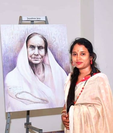 Jayashree Jena's enchanting paintings have the power to transport viewers into a world of magic and beauty. Her mastery in portrait work is truly exceptional, capturing the essence and emotions of her subjects with remarkable skill. In addition to her outstanding artistic talent, Jayashree actively participates in exhibitions, seminars, and camps, showcasing her passion for art. Today, she imparts her knowledge and expertise as a teacher at Kendriya Vidyalaya in Bhubaneswar, inspiring young minds to explore the wonders of painting. Jayashree Jena is a true artist and educator, leaving a lasting impact on all who encounter her work.
